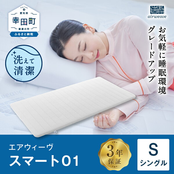 一枚を通して均一の硬さというシンプルな機能で、よりお気軽に快眠をご体感いただけるモデルです。 基本性能である寝返りのしやすさやふわっと身体が浮いたような寝心地、通気性の良さもそのままです。 名称 エアウィーヴ スマート01 シングル サイズ 幅97 × 長さ195cm × 厚さ4cm エアファイバーの厚さ:3cm 重さ 約5kg 素材 ●カバー ・表面(メッシュ地)=ポリエステル55%・綿45% ・中綿= ポリエステル100% ・裏地=ポリエステル100% ・裏面=ポリエステル100% ●中材(エアファイバー) ・ポリエチレン100% 販売者 株式会社 エアウィーヴ ・ふるさと納税よくある質問はこちら ・商品変更、キャンセル、返品は承れません。予めご了承くださいませ。サイズの確認など事前に行った上でお申込みをお願いいたします。