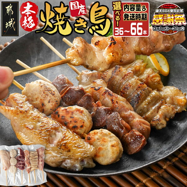 ★☆★楽天SOY受賞感謝祭★☆★ 全国の都城ファンに感謝を込めて! 3月1日〜31日の間、企業努力による特別規格をご用意しました☆ ※こちらの返礼品は、【内容量】と【発送時期】をお選びいただけます※ ※生冷凍でお届けします※ ふっくらと均一に焼きあがるよう一本一本真心を込めて串打ちした焼き鳥です。 もも・手羽の2種と、小肉(せせり)・皮・砂肝・ぼんじり・ねぎま・ハラミ・丸つくね・平つくね・ふりそでの9種類の中からおまかせで4種、合計6種類のセットを小分けしてお届けします。 ご自宅で焼き鳥屋さん♪楽しく食べ比べ♪ ホームパーティーやバーベキュー、おつまみやおかずの一品にいかがでしょうか。必要な分だけ解凍できるのでとっても便利です♪ ぜひ、鶏本来の旨味をお楽しみください。 ※以下より【内容量】と【発送時期】をお選びください。 【内容量】 ・36本(6種×6P) 約1.2kg ・48本(6種×8P) 約1.6kg ・66本(6種×11P) 約2.1kg 【発送時期】 ・ご入金確認後、10日以内にお届け≪みやこんじょ特急便≫ ・ご入金の翌月お届け ※発送時期の変更はお受けできませんので、よくご確認の上お申込みください。 ★☆★キャンペーン配送あり★☆★ 【父の日ギフト対象品】 今年の父の日は【6月15日】! 日頃の感謝を込めた父の日ギフトに好適! ・お申込期限:6月8日(日) ※クレジット決済限定 ・お届け時期:6月12日(木)〜6月15日(日)にお届けいたします。 ※お届け日のご指定はお受けいたしかねます。 ※配送地域、交通事情等により、お届けが前後する場合がございます。あらかじめご了承ください。 商品詳細 名称【ふるさと納税】 【期間限定特別規格!!】【内容量&発送時期が選べる!】職人串打ちの本格焼き鳥! 内容量国産鶏の焼き鳥(冷凍生串) 6本(6種)入り ・もも串 ・手羽串 ・お任せ串(4種) 【小肉(せせり)串・皮串・砂肝串・ぼんじり串・ねぎま串・ハラミ串・丸つくね串・平つくね串・ふりそで串 より4種】 ※以下より【内容量】をお選びください。 【内容量】 ・36本(6種×6P) 約1.2kg ・48本(6種×8P) 約1.6kg ・66本(6種×11P) 約2.1kg ※「もも串・手羽串」の2種と「小肉串・皮串など(全9種)」の中からお任せで4種を入れた、6本入りセットです。 ※各パックに入る串の種類は、原則、すべて同じ組み合わせとなります。 ※串の指定は出来ません。予めご了承ください。 ※画像はイメージです。 配送温度帯冷凍 消費目処または賞味期限加工日より冷凍保存で6ヶ月 お届け時期こちらの返礼品は、お届け時期を下記よりお選びいただけます。 ・ご入金確認後、10日以内にお届け≪みやこんじょ特急便≫ ※GW・お盆期間・年末年始を除きます。 ※スピード配送便のため、お申込み後のキャンセル・配送先情報の変更はいたしかねます。あらかじめご了承ください。 ・ご入金の翌月お届け キャンペーン配送について※キャンペーン配送のご寄附の方は、以下の項目を、よくご確認ください。 【決済について】 ・キャンペーン配送のご寄附は、全てクレジット決済限定です。 【お届け先について】 ・キャンペーン配送のご寄附は、贈り主を寄附者様のお名前でお届けします。(※お届け先と寄附者様のお名前が異なる場合のみ) ・お申込みの際は、配送情報の入力にご注意ください。 【注意事項】 ※キャンペーン配送のご寄附は、決済が完了していることを必ずご確認ください。 ※お届け日の指定はできません。 ※配送地域、交通事情等により、お届けが前後する場合がございます。あらかじめご了承ください。 地場産品に該当する理由近隣の複数団体を管轄すると殺場でと殺するため、流通構造上、近隣の団体で肥育された鶏肉と混在することが避けられない鶏肉と、区域内で製造・加工しているもの 販売者株式会社 ぽけっと都城 本製品には枠内を塗りつぶしたアレルギー物質が含まれています。 卵乳成分小麦えびかに 落花生そばあわびいかいくら オレンジカシューナッツキウイフルーツ牛肉くるみ ごまさけさば大豆鶏肉 バナナ豚肉まつたけももやまいも りんごゼラチンアーモンド魚介類 ◆使用するアレルギー物質(29品目中) 乳成分・小麦・牛肉・さば・大豆・鶏肉・豚肉 キャンペーンの詳細 父の日 受付最終日 6/8(日) お届け時期 6/12(木)〜6/15(日) この返礼品の活用法 本格炭火焼き 炭火でじっくりと焼き上げた焼き鳥は、外は香ばしく、中はふっくらとジューシーな食感が自宅で楽しめます♪ 種類豊富なセット もも、手羽とおまかせ4種の全6種類の部位がセットになっており、いろいろな味わいが楽しめます♪家族みんなで楽しむのに最適! 便利な小分けパック 小分けされているため、必要な分だけを解凍して使えるので便利♪少人数でも大人数でも楽しめます。 保存方法 生冷凍でお届けしますので、鶏本来の旨味を堪能できます。自宅でいつでも新鮮な焼き鳥を楽しむことができます♪ 父の日 父の日プレゼント ギフト お父さん お義父さん パパ 贈り物 ありがとう 感謝 父の日おすすめ 6月の第3日曜日 2025年6月15日 日