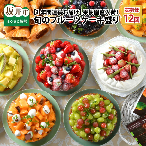 坂井丘陵地で採れるフルーツをふんだんに盛り付けたタルトやケーキを1年間連続でお届け! 商品詳細 名称 【ふるさと納税】【12ヶ月連続お届け】 果樹園直入荷!旬のフルーツケーキ盛り 内容量 【12ヶ月連続お届け】 ※以下は内容例になります。実際とは異なる場合があります。 4月 苺のタルト 直径24cm(8号) 5月 レアチーズとティラミスのケーキ 直径24cm(8号) 6月 マルセイユメロンのタルト 直径24cm(8号) 7月 ブルーベリーのタルト 直径24cm(8号) 8月 シャインマスカットのタルト 直径24cm(8号) 9月 梨とアールスメロンのタルト 直径24cm(8号) 10月 柿と栗のタルト 直径24cm(8号) 11月 さつまいものタルト 直径24cm(8号) 12月 冬のデコレーションケーキ 直径24cm(8号) ※12/15までの発送となります。 1月 アップルパイ 直径24cm(8号) 2月 バレンタインチョコ詰合せ 3月 ホワイトデー焼菓子詰合せ 配送方法 冷蔵 消費期限 発送日より冷蔵で3日以内 原材料名 旬の果物、生クリーム、牛乳、鶏卵、小麦粉、砂糖、バター、マーガリン、アーモンドパウダー、プードルアクレーム、チョコレート,トレハロース、洋酒 事業者 株式会社 Sourire 本製品には以下のアレルギー物質が含まれています。 乳、卵、小麦【ふるさと納税】【12ヶ月連続お届け】 果樹園直入荷!旬のフルーツケーキ盛り[P-5201] \ロールケーキ12個/ \ロールケーキ24個/ \ケーキ定期便6ヶ月/ 【ふるさと納税】彩とりどりのRoll Cake Set! 計12個 〜女子会に最適の詰め合わせ〜届いたらその場で食べれる♪珍しい生ケーキの冷蔵発送♪ 30,000円 【ふるさと納税】彩とりどりのHome Party Cake Set! 計24個 60,000円 【ふるさと納税】【6ヶ月連続お届け】 果樹園直入荷!旬のフルーツケーキ盛り 150,000円