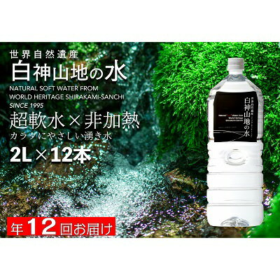 名称ナチュラルウォーター内容量【12か月連続 お届け】2L×6本×2ケース/計12本を12ヶ月続けてお届けします。※寄附金のご入金確認の翌月以降、初回発送から計12回のお届けお届けとなります。原材料水(湧水)※採水地:青森県西津軽郡鰺ヶ沢町(白神山地)賞味期限常温730日保存方法直射日光をさけて保存してください。製造者有限会社白神山美水館 青森県西津軽郡鰺ヶ沢町大字赤石町字大和田39-42事業者有限会社白神山美水館配送方法常温配送備考※2021年1月4日 本返礼品の寄付金額を見直しましたのでご注意ください。※画像はイメージです。※お申し込み、ご入金確認後、翌月より、12か月連続でお届けします。(途中でのキャンセル、月度の変更はできませんのでご了承ください。) ・ふるさと納税よくある質問はこちら ・寄附申込みのキャンセル、返礼品の変更・返品はできません。あらかじめご了承ください。【ふるさと納税】年12回お届け!! 白神山地の水 2L×12本 定期便 ナチュラルウォーター 飲料水 軟水 超軟水 非加熱 弱酸性 湧水 湧き水 水 お水 ウォーター ペットボトル 青森県 鰺ヶ沢町 国産 【定期便・飲料類・水・ミネラルウォーター】 【12か月連続お届け 白神山地の水2L×12本】日本初の世界自然遺産白神山地で育まれた湧き水を、非加熱製法にてボトリング。水に含まれる酸素や二酸化炭素は自然のまま。硬度はわずか0.2mg/lの「超」が付くほどの軟水で、やわらかく、まろやかな口当たりが好評です。コーヒー、お茶、お料理にも最適。赤ちゃんも安心して飲める、体に優しい湧き水です。 寄附金の用途について 産業の振興 健康福祉の増進 教育文化の発展 自治体におまかせ 受領証明書及びワンストップ特例申請書のお届けについて 入金確認後、注文内容確認画面の【注文者情報】に記載の住所にお送りいたします。発送の時期は、入金確認後2〜3週間程度を目途に、お礼の特産品とは別にお送りいたします。