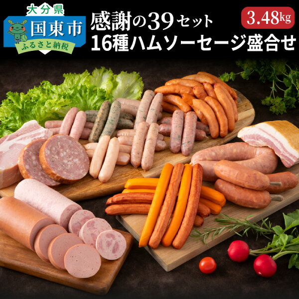 感謝の気持ち(39:サンキュー)を込めて、39000円のご寄附でお贈りする、厳選した大分県産全16種類のハムソーセージを盛合せで3.48kgお届けします。大容量ですが冷凍発送しますので賞味期限も充分で安心。食べる前に冷蔵庫に移し、自然解凍しお召し上がり下さい。全16種類、量はもちろんのこと、味も太鼓判です! 名称 【ふるさと納税】感謝の39 セット/16種ハムソーセージ盛合せ3.48kg 原材料 別途商品に記載 アレルギー表示 卵 、乳、豚、鶏、りんご、ゼラチン、大豆 内容量 全16種のハムソーセージ盛合せ3.48kg《内訳》ロースハム300g、ベーコン350g、荒挽ウインナー500g、ゲルダーフランク・ビアシンケン・ボロニアソーセージ各300gを各1P、大葉ウインナー・乾したけウインナー・かぼすウインナー・味一ねぎウインナー・冠地どりウインナー・ニラウインナー各100gを各1P、骨付きフランク210g、スモークウインナー・辛口ウインナー各200gを×各1P、ボロニアペッパー110g×2P 消費期限 製造日から冷凍で360日間 保存方法 別途商品に記載 配送方法 冷凍 提供 全国農業協同組合連合会 大分県本部(M)大分県 大分市大字古国府1220番地 ・ふるさと納税よくある質問はこちら・寄附申込みのキャンセル、返礼品の変更・返品はできません。あらかじめご了承ください。【ふるさと納税】感謝の39 セット/16種ハムソーセージ盛合せ3.48kg入金確認後、注文内容確認画面の【注文者情報】に記載の住所にお送りいたします。発送の時期は、寄附確認後速やかに、お礼の特産品とは別にお送りいたします。●ワンストップ特例申請について詳しくはこちら詳細にて適用条件・注意事項をご確認のうえ、申請をご希望される方は寄附お申し込み時に「3.【ワンストップ特例申請制度について】」にて「申請書を要望する」を選択してください。
