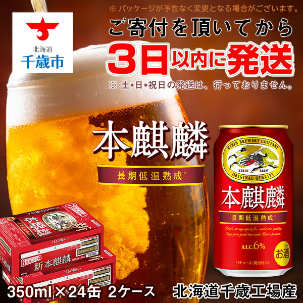 名称発泡酒内容量キリン 本麒麟350ml 1ケース(24本)×2ケース原材料麦芽、ホップ、大麦、コーン、糖類、大麦スピリッツ保存方法常温事業者株式会社Souplesse配送方法常温配送備考※画像はイメージです。※発泡酒※受注状況により発送が遅れる場合があります。※出荷の都合上、曜日指定、日にち指定はお受けできませんので、あらかじめご了承願います。ご不在時には、不在票を投函いたしますので、ご確認の上、お受け取り頂けますようお願い申し上げます。※20歳未満の飲酒は法律で禁止されています。20歳未満のお申し込みはご遠慮ください。 ・ふるさと納税よくある質問はこちら ・寄附申込みのキャンセル、返礼品の変更・返品はできません。あらかじめご了承ください。 ふるさと納税楽天市場ふるさと納税北海道ふるさと納税納税ふるさと納税お祝いふるさと納税ギフトふるさと納税人気ランキングお試し食品グルメお取り寄せグルメ訳あり訳アリ父の日父の日ギフト父の日プレゼントお父さん母の日母の日ギフト母の日プレゼントお母さん敬老の日おじいちゃん祖父おばあちゃん祖母御中元お中元中元お歳暮御歳暮歳暮クリスマス残暑御見舞残暑見舞いギフトプレゼント贈り物お見舞い退院祝い全快祝い快気祝い快気内祝い結婚式結婚祝いご結婚御祝結婚内祝い引き出物引出物引越しご挨拶引っ越し出産祝い出産内祝い合格祝い合格内祝い進学祝い進学内祝い入学祝い入学内祝い小学校入学祝い小学校入学内祝い中学校入学祝い中学校入学内祝い高校入学祝い高校入学内祝い大学入学祝い大学入学内祝い幼稚園入園内祝い卒業記念品卒業祝い新築祝新築内祝い金婚式お祝いお供え法事供養バースデーバースデイバースディ七五三祝い【ふるさと納税】キリン本麒麟<北海道千歳工場産>350ml 2ケース 【お酒・ビール】 ◆発送が早くなりました!!ご注文から3日以内に発送致します◆※土日・祝日にご注文頂いた場合は翌営業日からの3日以内の発送となりますのでご了承下さい。◆資源削減のため、ダンボールでの梱包を廃止致しました◆ 北海道の玄関口、新千歳空港の目と鼻の先にある【キリンビール株式会社北海道千歳工場】支笏湖という素晴らしい湖が近くにあり、非常に豊かな自然に囲まれた場所にあります。“ドイツ産ヘルスブルッカーホップ”ドイツ産ヘルスブルッカーホップを一部使用し、上質な苦味と爽やかな香りで、力強いうまさとコクを実現。“長期低温熟成が生むコクのある味わい”キリンビール伝統の長期低温熟成の期間をさらに1.5倍にした製法で雑味がとれた調和のある味わい。“飲みごたえのあるALC.6%”少し高めのアルコール分6%が力強く満足度の高い飲みごたえ。 寄附金の用途について 受領証明書及びワンストップ特例申請書のお届けについて 入金確認後、注文内容確認画面の【注文者情報】に記載の住所にお送りいたします。発送の時期は、入金確認後2〜3週間程度を目途に、お礼の特産品とは別にお送りいたします。