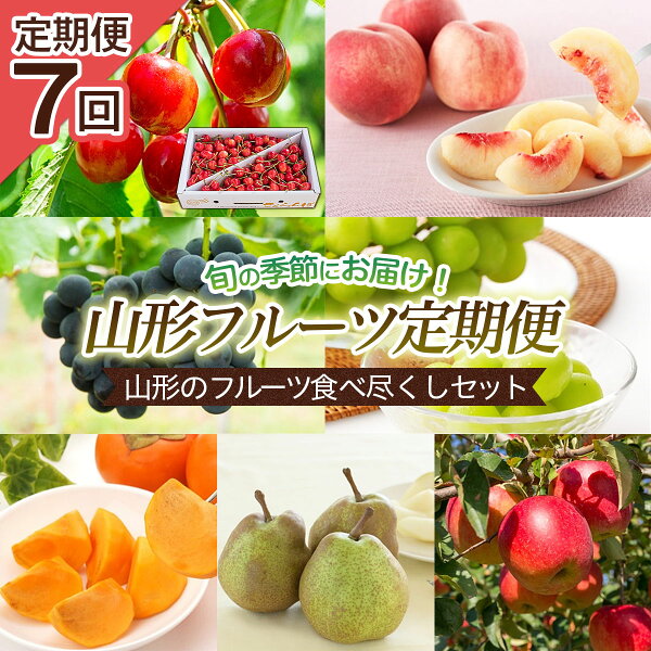 商品説明 名称 定期便 産地名 山形産 内容量 【令和4年産】 1回目:さくらんぼ(佐藤錦)約200g×4パック 秀 L (6月13日~7月8日)冷蔵 2回目:白桃約2kg 秀 4~9玉 [やわらかくなる桃](あかつき、川中島、まどか、いけだ、ゆうぞら、玉うさぎ)(8月5日~9月5日)冷蔵 ※桃の品種はお選び頂けません 3回目:山形産ピオーネ 約600g 秀 1房 (9月5日~10月5日)冷蔵 4回目:山形産シャインマスカット約600g 1房 秀 (9月20日~10月20日)冷蔵 5回目:山形産柿 ML 約3kg 秀 12~18玉 (10月15日~11月15日)常温 6回目:小玉ラ・フランス約3kg 秀 10~16玉 (11月1日~11月30日)常温 7回目:ふじりんご約3kg 秀 6~12玉 (11月25日~12月25日)常温 発送期間 2022年06月13日頃~2022年12月25日頃 ※天候や収穫状況により配送時期が前後する場合がございます。 配送方法 冷蔵及び常温発送 提供元 株式会社さくらんぼファクトリー 【山形連携中枢都市圏における共通返礼品です。さくらんぼ及びラ・フランスについては、関係市町(山形市、寒河江市、村山市、山辺町、中山町、西川町、大石田町、大江町又は尾花沢市)内で生産されたものをお送りします。】 山形を代表するフルーツ定期便です。 山形の自然豊かな気候で育ったフルーツをご堪能ください。 事業者:株式会社さくらんぼファクトリー ◆必ずお読みください◆ ◎こちらの定期便は、商品に応じて常温発送及び冷蔵発送となります。お受け取り後はすぐに中身をご確認ください。 ◎さくらんぼは旬の短い大変デリケートな果物ですので、到着後早めのお受け取りとご確認にご協力ください。発送可能な期間は品種ごとに約2週間程度となっておりますので、その旨をご了承の上お申し込みをお願い致します。 ぶどうについて ◎基本的には種の無いぶどうですが、まれに種が残る場合があります。 ◎完熟により糖度が上がる際、脱粒や果汁漏れが起こる場合がございます。その旨ご了承の上でお申し込みをお願い致します。 ◎天候や収穫等の状況によりご希望のお品をご用意できない場合であっても、税金の控除等に影響の無いよう、代替品をご用意致します。 (すでに税金の控除等を受けている方への返金は確定申告や修正申告が必要となる場合があります。) ◎「お申し込みの不備」「事前連絡をいただいていない長期不在や転居」「住所不明」「日数が経ってからのお受取り」に対する再出荷は致しかねますのでご了承ください。 ※沖縄・離島への配送は不可とさせていただきます。 ※季節商品のため、お礼の品の配送日の指定は承っておりません。 ※天候や収穫状況により、お届けや規格が変更になる場合がございます。 ※配送時の揺れや傾きにより若干の傷が生じる場合がございます。 ※画像はイメージです。画像のものと多少異なる場合があります。 ※商品お受取り後、すぐに商品の状態をご確認ください。お礼の品の発送には万全を期しておりますが、万が一ひどい傷み等があった場合は、写真・画像を添付の上お早めに「山形市ふるさと納税お礼の品事務局」までご連絡ください。尚、お時間が過ぎてからの対応は致しかねます。 ・ふるさと納税よくある質問はこちら ・寄附申込みのキャンセル、返礼品の変更・返品はできません。あらかじめご了承ください。【令和4年産先行予約】 「ふるさと納税」寄附金は、下記の事業を推進する資金として活用してまいります。 寄附を希望される皆さまの想いでお選びください。 1 市政一般 2 健康の保持・増進 3 健やかな子どもの育成 4 地域共生社会の実現 5 創造都市の推進 6 地域経済の活性化 7 山形ブランドの浸透と交流拡大 8 都市の活動を支える基盤整備 9 環境保全 10 チャレンジ環境の創出等 入金確認後、注文内容確認画面の【注文者情報】に記載の住所にお送りいたします。 発送の時期は、寄附確認後2週間程度で、お礼の品とは別にお送りいたします。